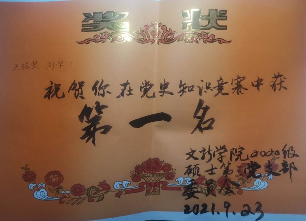 为调动大家参与的主动性和积极性,支委会设置了一、二、三等奖,为本次竞赛的前三名颁发奖状和奖品。最终,王铭翌同学、唐晴芳同志、徐蕾同志分别取得了第一名、第二名和第三名的好成绩。