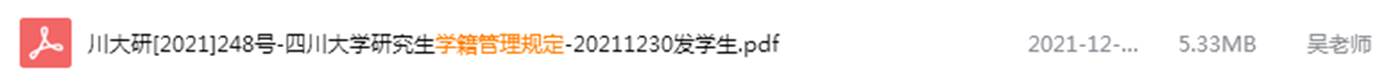 重要提醒:2021年12月30日研究生院下发了《四川大学研究生学籍管理规定(2021年修订)》的通知(已于当日分享在管理群内),请特别注意其中“自2022年9月1日起,学校不再实行研究生毕业授位分离制度”及“结业”条款新规定,请各位同学务请知晓并重视,并主动与导师联系沟通。