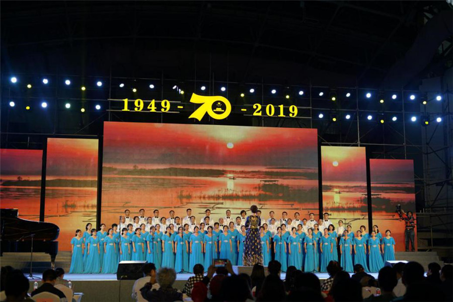 比赛现场,各支参赛队伍先后合唱《长江之歌》、《我和我的祖国》、《保卫黄河》、《爱我中华》等经典曲目,共庆新中国成立70周年。体球网手机比分