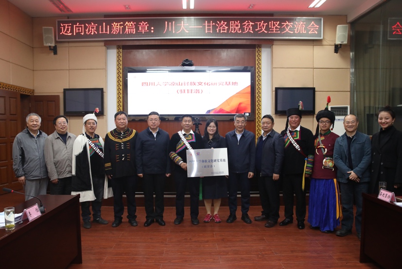 15日下午,“四川大学-甘洛县决战决胜脱贫攻坚工作座谈会暨《迈向凉山新篇章》四川大学脱贫攻坚纪实文学报告会”在甘洛县政府机关大楼会议中心举行。甘洛县委副书记段勇纲首先汇报了甘洛县脱贫攻坚工作及四川大学定点帮扶的工作情况,他特别致谢了四川大学所做的重要贡献。他说,四川大学对甘洛县在智力扶贫、教育扶贫、医疗扶贫、文化扶贫领域的帮扶持久而深入,尤其在格布村的定点扶贫、幼儿园建设、干部人才队伍培养等方面成果显著。