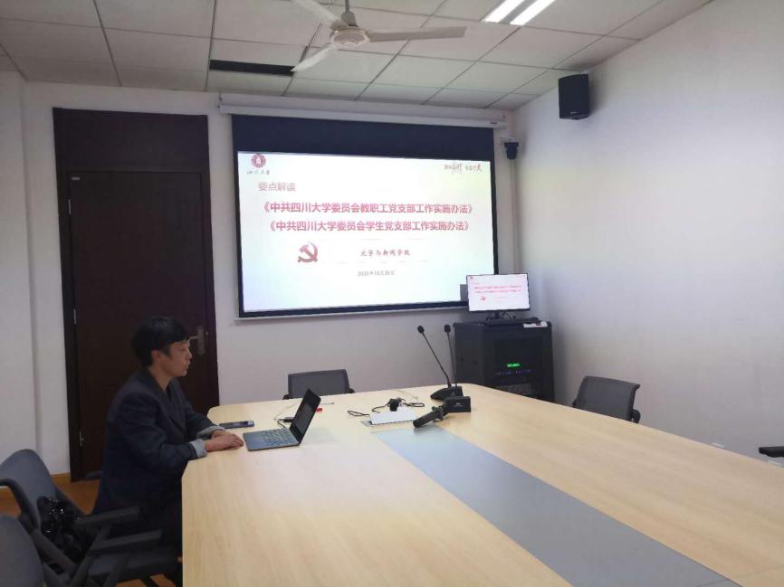专职组织员成春教授为教职工党务工作者开展了线上培训暨“十九届五中全会”精神专题党课学习。专题党课学习了《中共四川大学委员会教职工党支部工作实施办法》及《十九届五中全会公报》,学院各教职工支部书记及部分教师代表参加了培训学习。