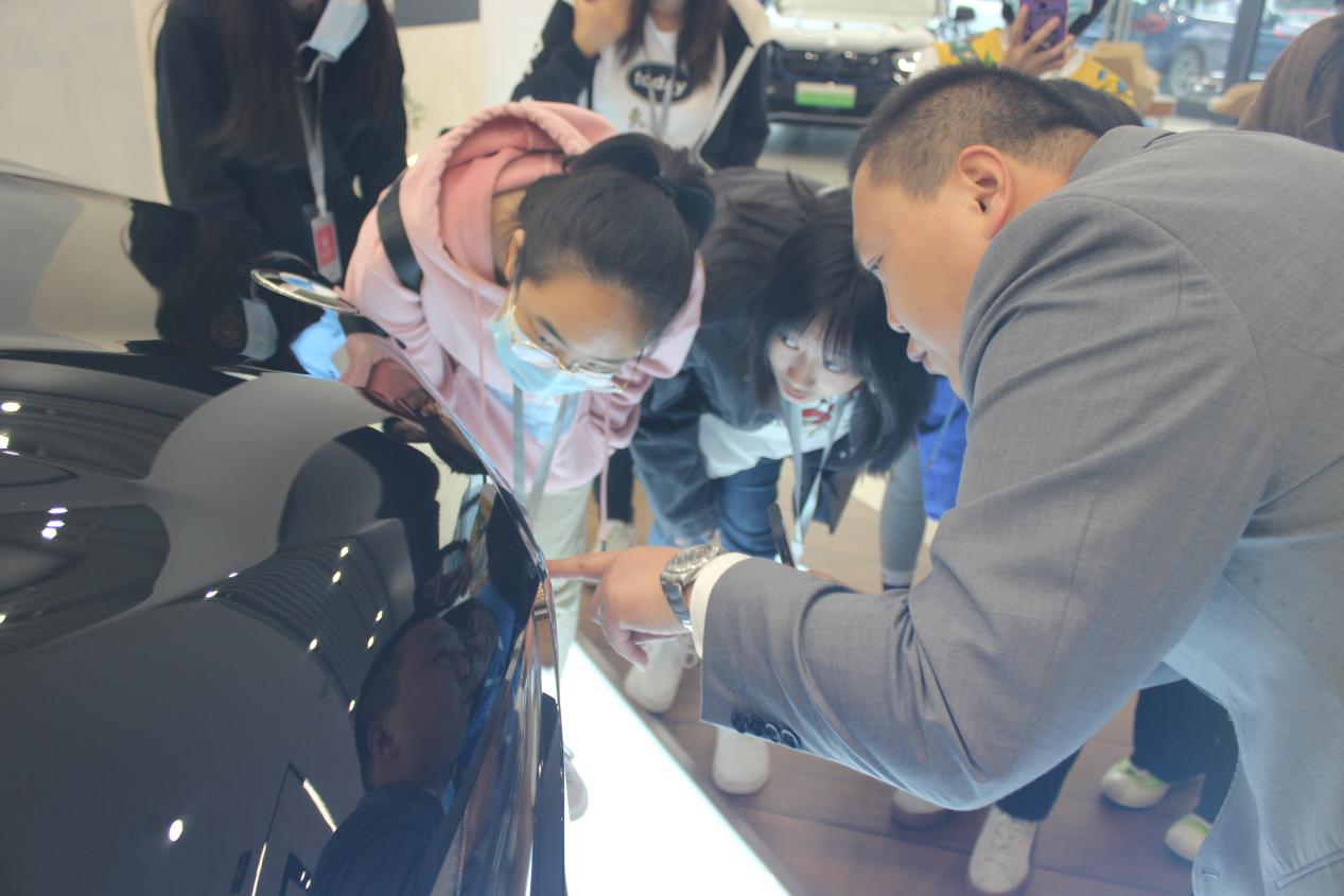 活动第一站,同学们到达了位于龙潭总部新城的全球最佳5S宝马培训展示中心。工作人员带领大家进行参观,为同学们介绍了各种车型,还介绍了宝马的历史文化发展沿革,以及当下的主要创新点,并针对同学们的提问进行了细致解答。