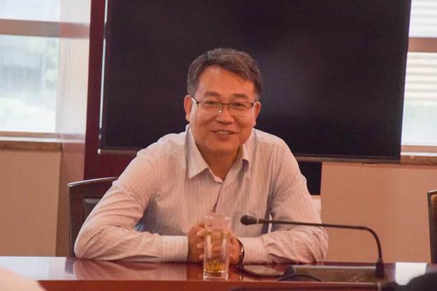 党委书记古立峰教授(正面左一)及师生介绍参考消息进学院的活动报道