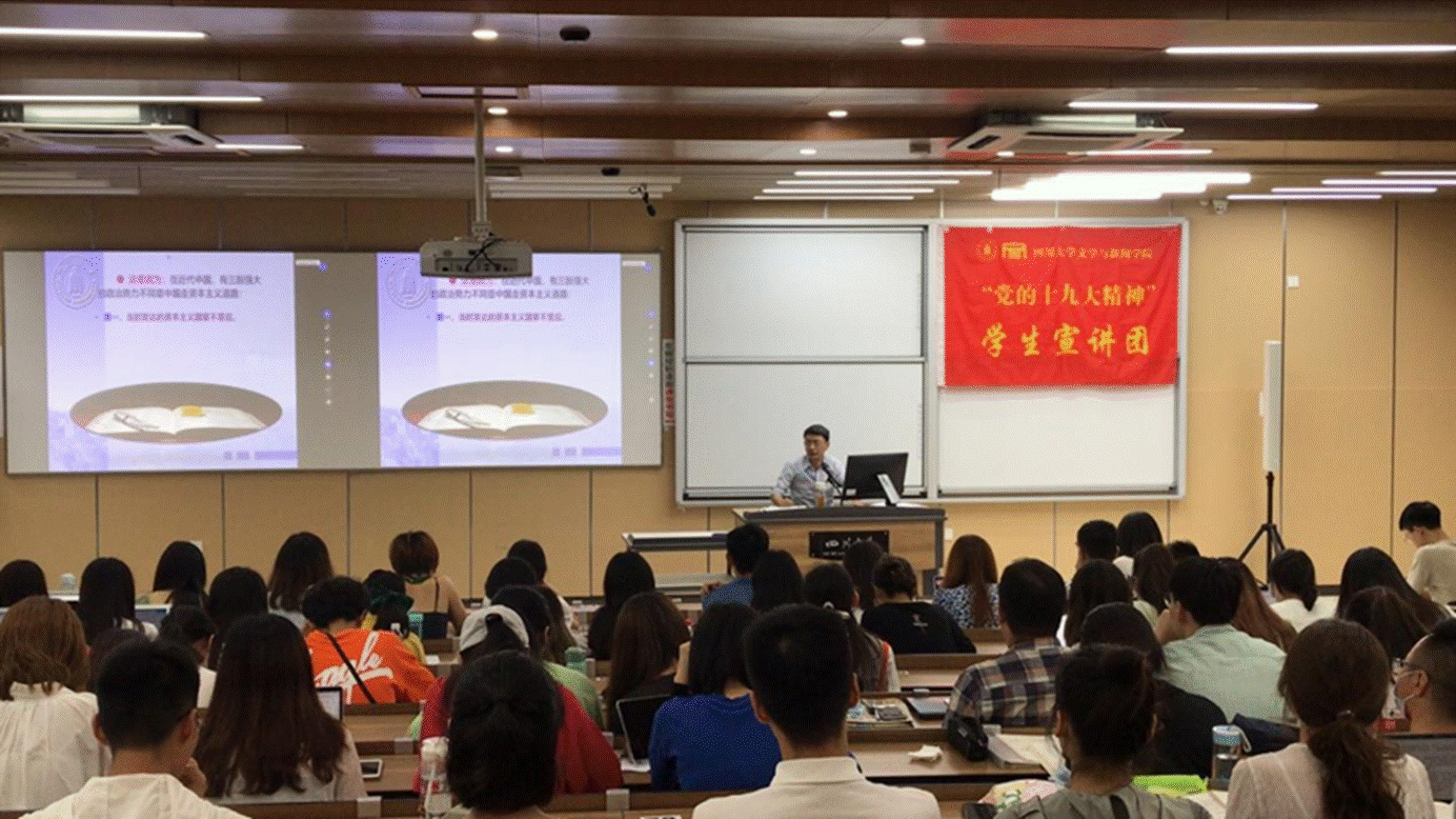 在江安校区综合楼C座106教室举行“党史学习教育专题宣讲会”,特邀四川大学宣讲团专家张诚教授主讲,学院党委副书记张莹主持,“党的十九大精神”学生宣讲团成员、学生党员以及入党积极分子200余人参加了宣讲报告会。
