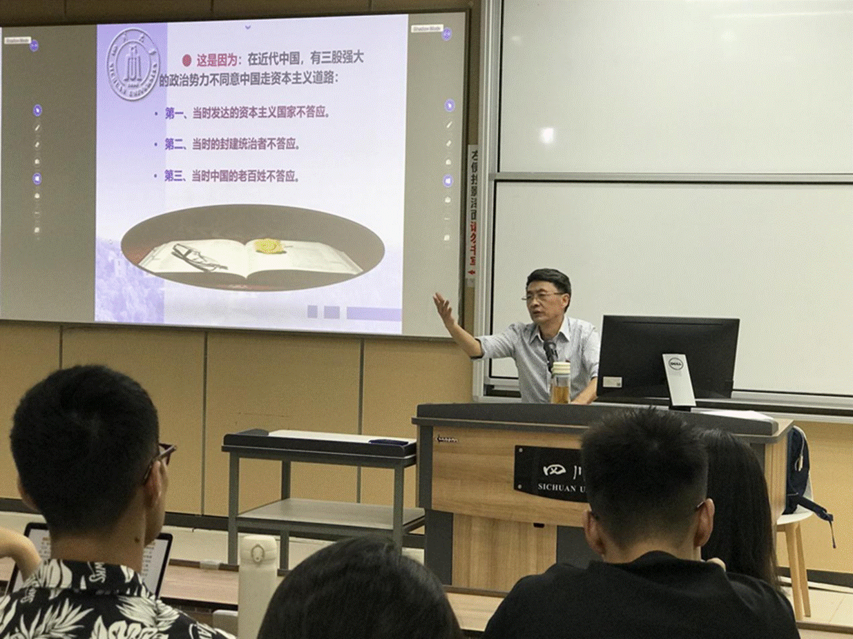 紧接着,张诚教授又以习总书记在党史学习教育动员大会上的重要讲话精神为遵循,紧密联系学校实际,宣讲了在党的领导下,四川大学党组织引领师生职工在我国革命、建设、改革和奋进新时代的历史进程中做出的突出贡献,以及学校十四五规划的总体目标和未来十五年的展望,并对青年学生的健康成长提出了殷切期望。张诚教授激情洋溢的宣讲,赢得了与会同学们的热烈掌声。