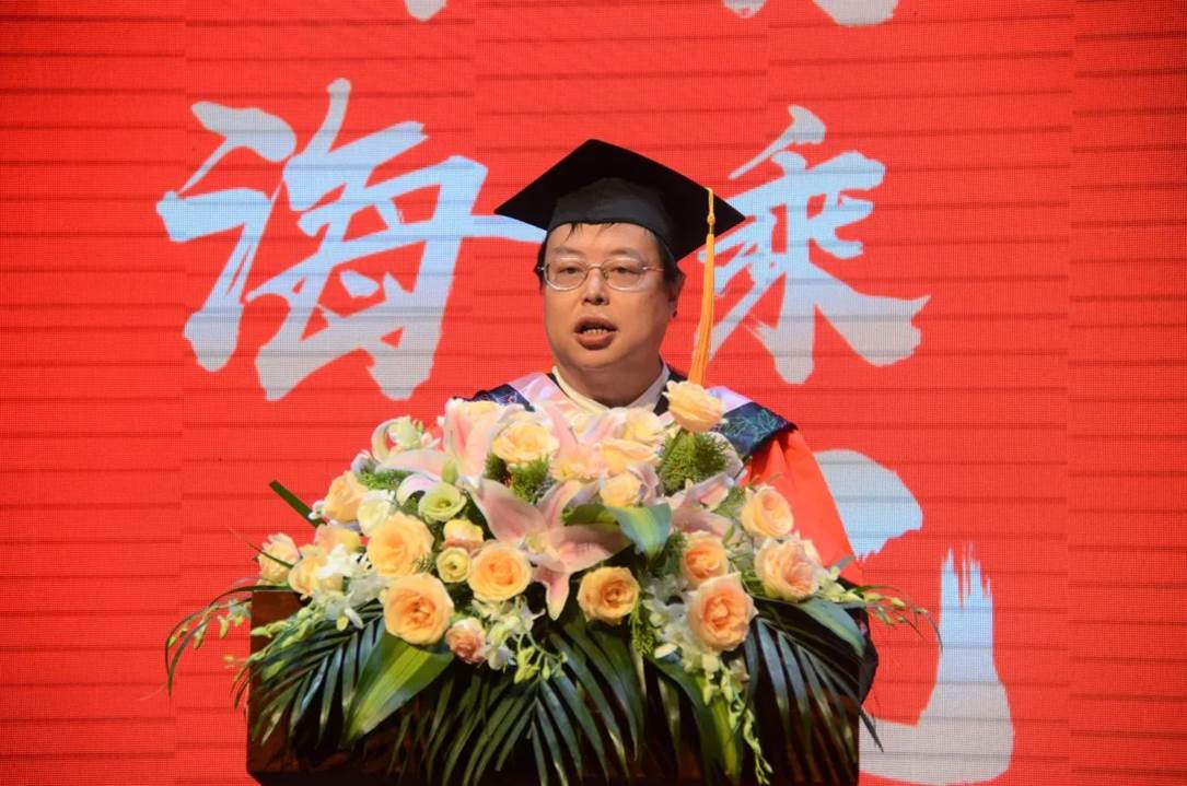教师代表王炎龙教授向毕业生们表达祝贺,并向为同学们的成长付出辛勤汗水的老师、教职员工和家长们致以崇高的敬意和衷心的感谢。“在座的本、硕、博毕业生们,身着不同颜色的学位服,却镶嵌着一个共同的母校的名字——四川大学。”王炎龙教授说,在四川大学,同学们都收获了不悔的青春。青春多姿多彩,却只有一个颜色是永恒的,那就是本色。他用纯真、纯粹、纯正、纯良、纯美的“本色”为由,寄语在座毕业生:“以本色置身于纷繁世界中而能明辨是非,保持人品的底色,提振人生的底气,坚守人性的底线。”他希望大家走出校园后,脚踏实地,登高望远,“因为最美的风景往往在不远处,最美的情境往往在最高处。当你们倦怠的时候,spbo手机