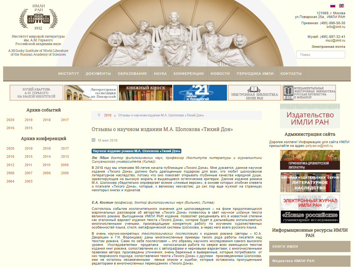 俄罗斯国立肖洛霍夫故居博物院官网新闻