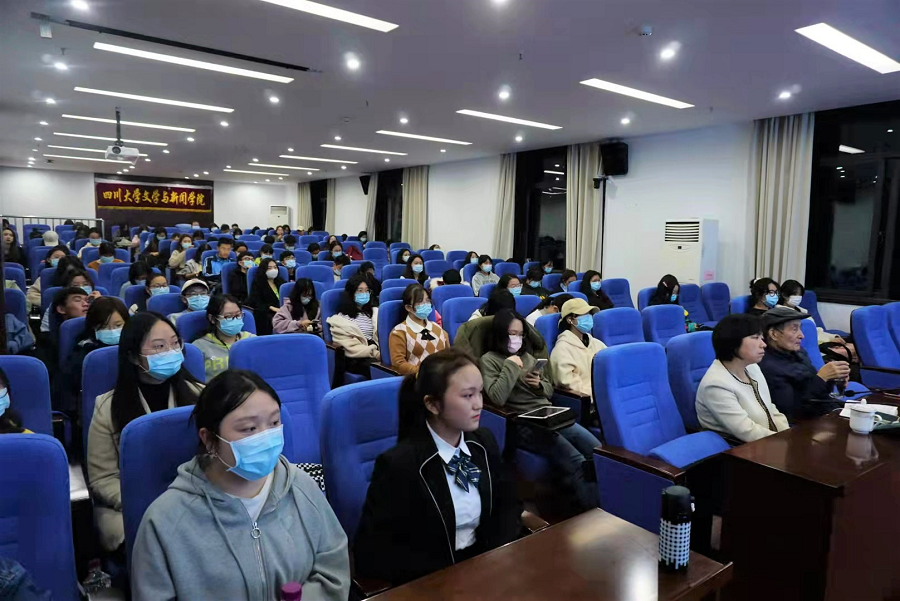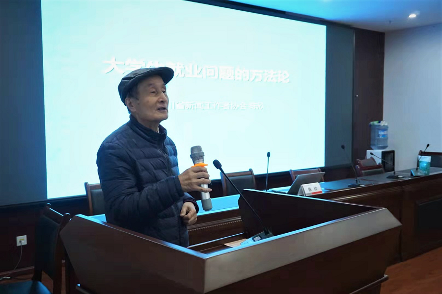 关工委下设的“心理健康与就业指导组”组长、原四川大学新闻学院院长邱沛篁教授首先欢迎专题讲座主讲人陈欣老师的到来,并介绍主讲嘉宾陈欣老师是四川大学1981级首届新闻专业本科生,原四川日报报业集团《人力资源报》总编辑、总经理;现为四川省新闻工作者协会常务副秘书长兼办公室主任、我校传媒校友会副秘书长。