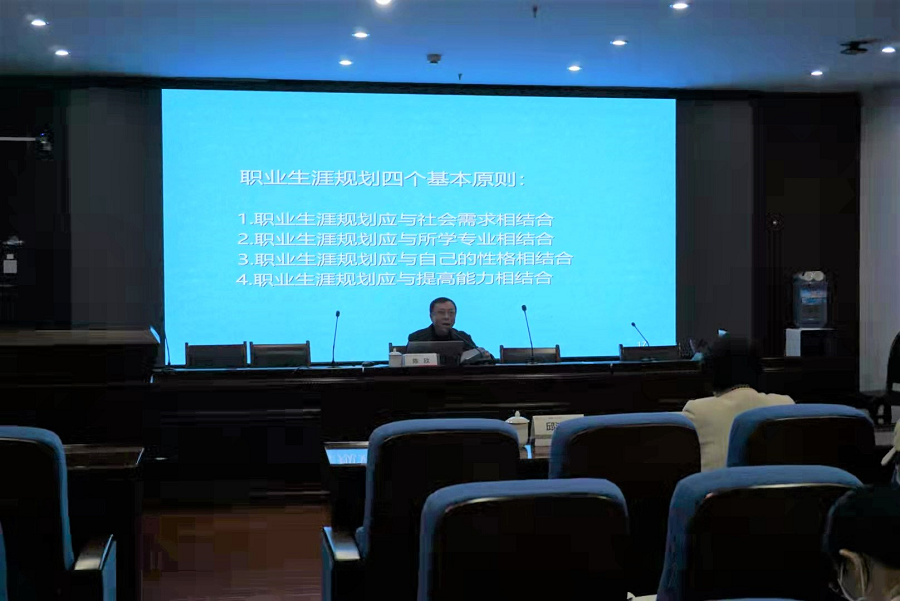 讲座伊始,陈欣老师解读了就业的严峻形势和国家对人才的紧迫需求这一社会背景,并表示在国家经济转型背景下,抓好就业工作具有重大意义。他从待遇、风险、人际关系、个人发展空间、竞争压力等多个方面对考研、考公务员、出国留学、自主创业、自由职业等八类大学生毕业后的主要选择的利弊进行了详细分析,并结合学院往年毕业学生去向的数据为不同性格的同学提供了针对性建议。