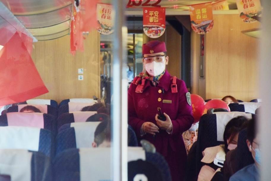 同杨先生一样,绵泸高铁和谐号动车组的乘务员们也难掩内心的激动,这正是绵泸高铁通车以来迎接的首个春运。身处疫情中,为了给旅客提供更安心的出行环境,大家做了充足准备,在寻常的口罩、护目镜外,乘务员们还特地配备了寻检仪,在到站时监测列车情况,保障上下车安全的同时第一时间回应旅客需求。此外,列车制定了严格的消杀制度,每两个小时将进行全面清洁,用工作人员自己的话说,只要是乘客眼睛能看到的地方,手能触摸到的地方,都是不能放过的角落。针对长途行车中的用餐需求,列车开通了扫码订餐服务,只需通过手机下单,不一会儿,热腾腾的餐食就能被送到乘客的座位上。