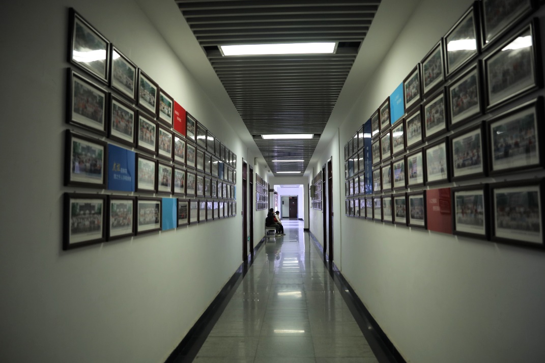 化学工程学院二层楼梯处,整墙展示着院训——“立足基础 面向工业 服务社会”,校徽与文字“四川大学化工学院”落于上方。立足理论研究攻克化工科学难题,面向实践难题实现成果工程化应用,服务国家和区域经济社会发展,这一直是代代川大化工人的科研精神和事业追求。