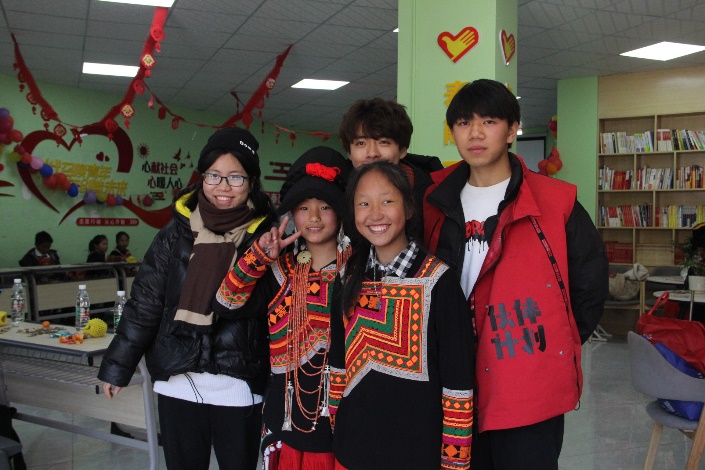 “童伴计划”结课仪式结束后调研队与当地学生合影