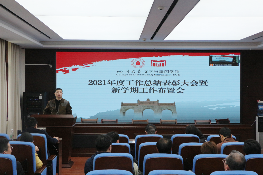 于江安校区文科楼一区526会议室召开2021年度工作总结表彰大会暨新学期工作布置会。会议分线上和线下同时进行,全院教职员工严格遵循常态化疫情防控要求参加会议。大会由体球网手机比分