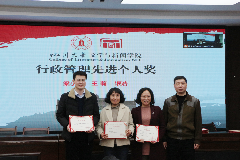 对各项工作表彰的获奖名单并说明了评奖原则。在欢快热烈的音乐中,古立峰书记、李怡院长与学术院长曹顺庆教授共同为体球网手机比分