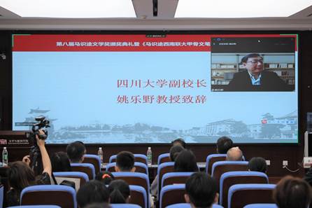 四川大学副校长姚乐野教授在颁奖仪式致辞中回顾了四川大学建校以来的杰出校友,他代表四川大学对马识途先生以及家人、朋友为中国近代革命史和巴蜀文学史做出的巨大贡献表达了崇高敬意,也对马识途先生自2014年以来对“马识途文学奖”的个人捐款表示衷心感谢。他表示,学校将同spbo手机