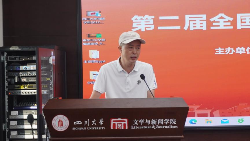 (出版学院)院长李怡教授对各位专家和学子的到来表示热烈欢迎,并简要介绍了学院的基本情况。他在致辞中指出,国家高度重视出版业发展与出版学科建设,在刚结束的全国出版学科共建工作会上,四川大学入选全国首批5所共建出版学院,将着眼于“打造特色鲜明的高层次出版人才培养新标杆”。本次论坛的举办既是出版学院揭牌后的首次亮相,也是学院加强高层次出版人才培养的行动彰显。他希望各位有志于在四川大学实现学术抱负的新锐,踊跃报考四川大学,加入四川大学出版学院。