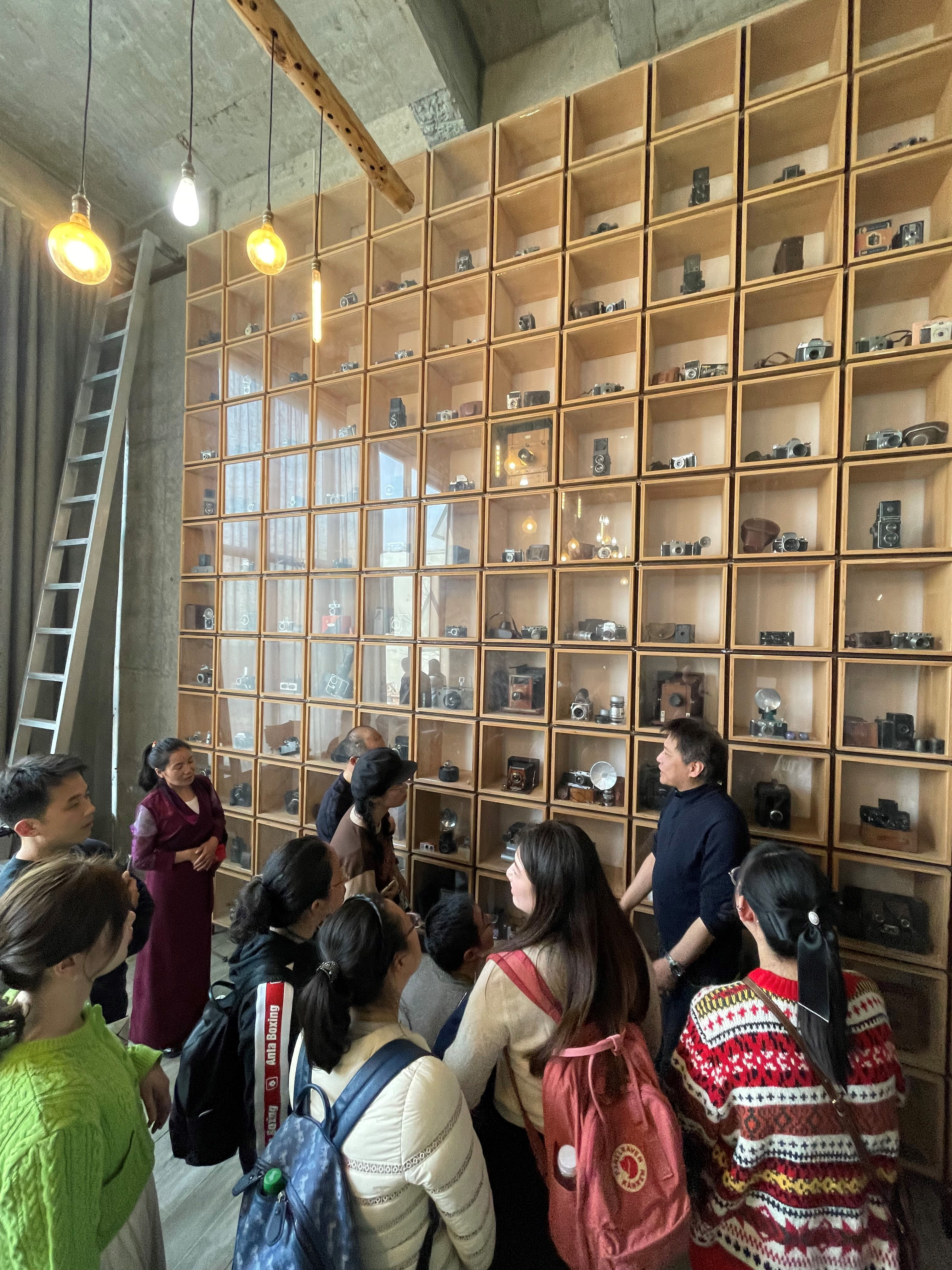 丁浩宸老师的工作室。丁老师向大家展示了自己创作和收藏的艺术品,并分享了一些摄影摄像方面的创作技巧和心得体会。