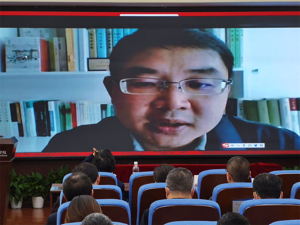 赠送《郭沫若研究年鉴》(2013—2020)卷和《中国通史》(4卷本)(由张昊鹏社长、刘曦光副馆长、陈时龙处长向李怡院长赠送),并现场发布《郭沫若研究年鉴》(2020卷),中国社会科学出版社年鉴分社社长张昊鹏就此发表讲话。