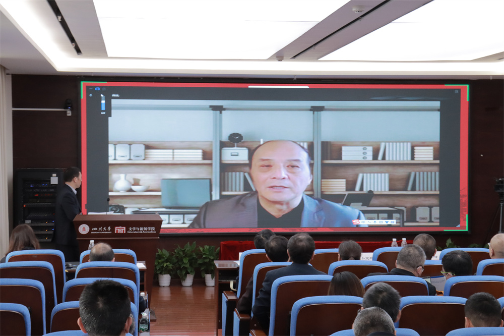 中国社会科学院古代史研究所王静副研究员代为宣读中国社会科学院古代史研究所(郭沫若纪念馆)原馆长、郭沫若先生的女儿郭平英的发言稿。郭女士回忆了1979年与中国社科院和四川大学的王锦厚、曾绍义等学者一同编辑《郭沫若全集》的工作,表示将大力协助“四川大学郭沫若研究基地”的科研项目、文化、教学活动的开展。此外,中国郭沫若研究会会长、中国社科院研究员蔡震,国际郭沫若学会会长、日本国士馆大学中文系主任、郭沫若先生的外孙女藤田梨那教授,中国郭沫若研究会原副会长冯时,中国郭沫若研究会副会长、北京师范大学教授张越,中国郭沫若研究会监事委员会主任、中国郭沫若研究会原副会长、山东师范大学教授魏建,中国社会科学院研究员、中国郭沫若研究会秘书长李斌线上出席会议并讲话。中国郭沫若研究会原副会长、四川省社科院研究员谭继和,四川郭沫若研究会副会长、乐山师范学院郭沫若研究中心主任、教授廖久明,spbo手机