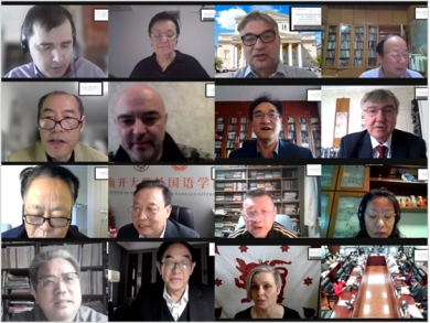 副院长胡易容、俄罗斯科学院东方文献研究所所长伊·费·波波娃、俄罗斯科学院中国与当代亚洲研究所代理学术所长亚·弗·卢金分别致辞。在三场主旨发言环节,来自浙江大学、南京大学、上海交通大学、华东师范大学、首都师范大学、中国社会科学院当代中国研究所、南京师范大学、江西师范大学、安徽师范、四川大学、西南民族大学、西南农业大学、俄罗斯科学院中国与当代亚洲研究所(原远东所)、东方文献研究所和圣彼得堡国立大学等机构的二十余位专家学者,以线下和线上相结合的方式发言,纷纷对刘亚丁教授的著作《龙影朦胧——中国文化在俄罗斯》给予学术评价,表达高度赞扬。