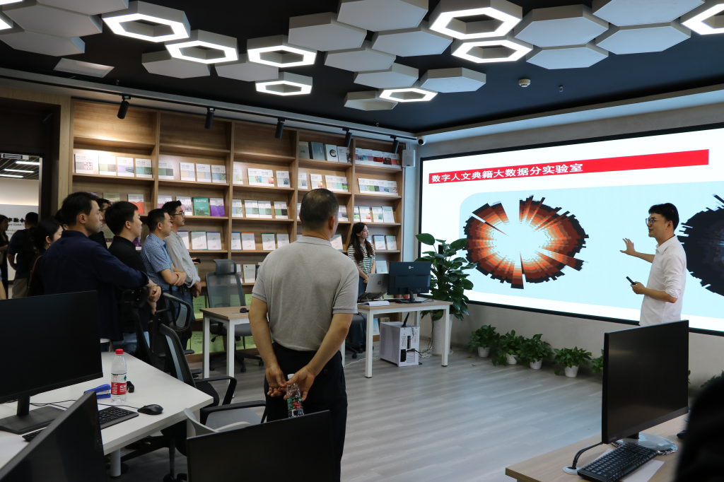 活动开始前,成都市委宣传部与成都市文促中心相关领导、每日经济新闻报社、成都光厂创意科技有限公司、睿意高攀文化创意(集团)有限公司、成都瘾食文化传媒有限公司等11家企业参会代表进行产学研考察交流活动,参观了四川大学中华文化传承与全球传播数字融合实验室的三个分实验室:数字人文典籍大数据分实验室、数字文学场景沉浸分实验室与数字多模态符号认知分实验室。
