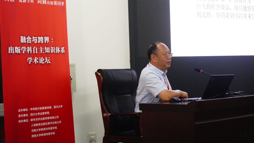李怡院长在致辞中,以论坛的两个关键词——“融合”“跨界”,简要介绍了四川大学出版学科的发展历史与现状,并展望出版学科在融合与跨界中探索新的发展路径的思考和看法。他同时指出,四川大学出版学院在构建中国特色出版学科自主知识体系的过程中,将积极推动与中国语言文学、新闻传播学等相关学科的交叉融合,加强与出版行业的沟通与协作。