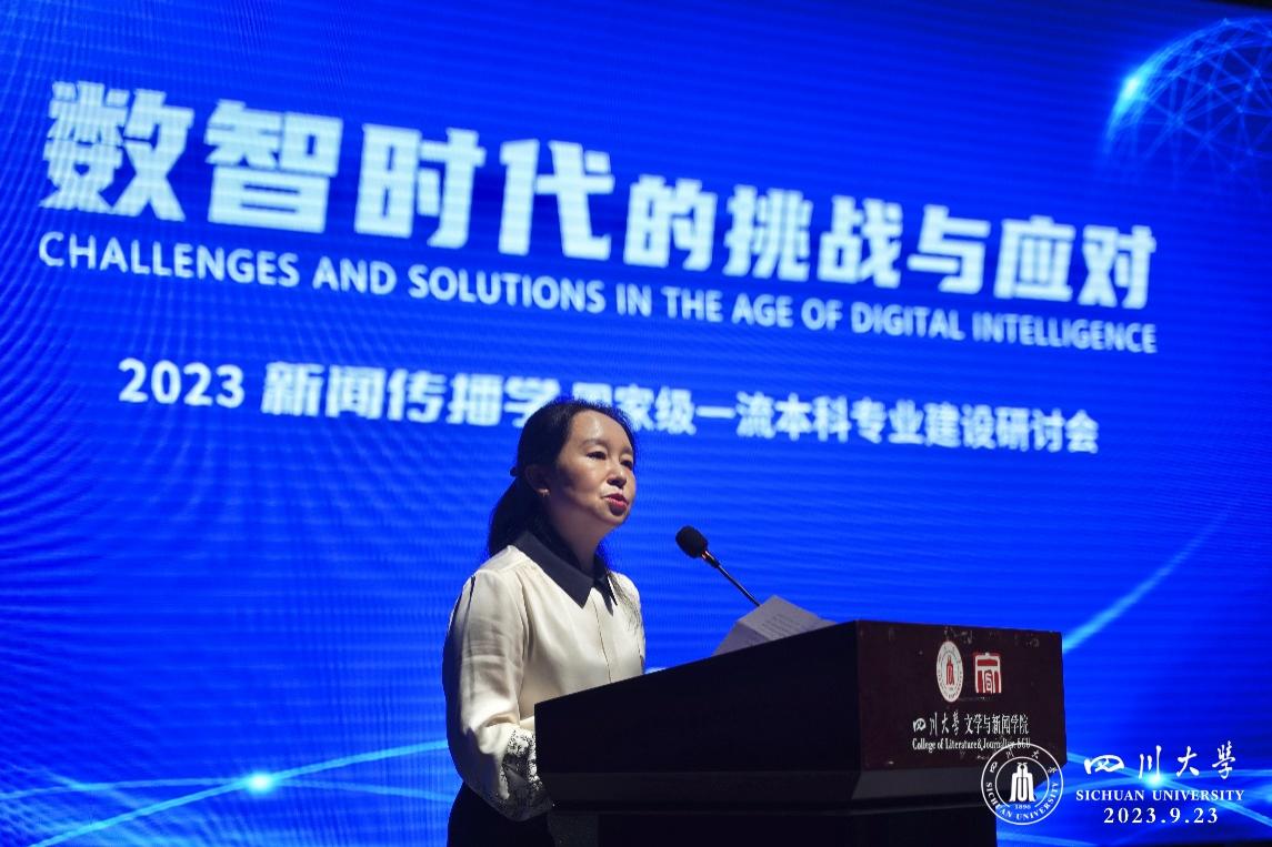 2023年9月23日,由四川大学新闻学院主办的“数智时代的挑战与应对:2023新闻传播学国家级一流本科专业建设研讨会”在四川大学江安校区举行。这是学院继新闻学之后的第二次学科会议。来自中国传媒大学、中国人民大学、复旦大学、北京大学、华中科技大学、上海交通大学、南京大学、北京师范大学、华南理工大学、重庆大学、西安交通大学、四川大学等高校的100余名学者参加了本次会议。