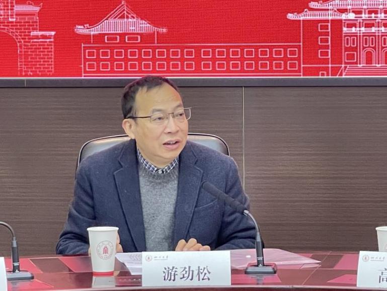副院长胡易容教授主持。胡易容教授介绍了四川大学多年来的建设道路与发展战略思路,表达了对此次两校协同合作、共建分中心的祝愿。四川大学副校长游劲松教授表达了中心与四川轻化工大学共建“中华优秀传统文化传承发展研究分中心”的信心。他表示,分中心是一个汇聚文化人才、资源和研究成果的创新平台,未来将成为一个重要的文化交流窗口,展示中华优秀传统文化的独特魅力和价值,并为世界文化多样性的发展做出积极贡献,为中华民族共同体走向人类命运共同体贡献中华文化的智慧与力量。