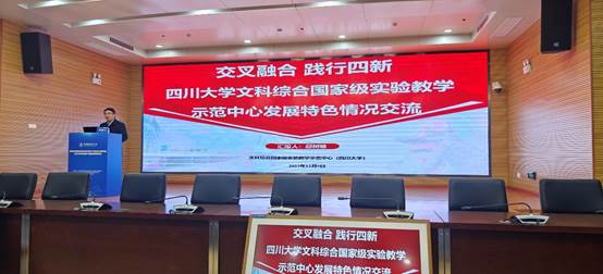 实验室主任邱树雄副教授应邀做主题报告,报告题目为“交叉融合·践行四新:四川大学文科综合国家级实验教学示范中心发展特色情况交流”。报告中介绍了我校文科综合国家级实验教学示范中心(以下简称“文综实验中心”)近些年的发展情况,介绍了文综教师队伍建设、实验教学资源情况和实验改革措施,其中介绍了体球网手机比分
