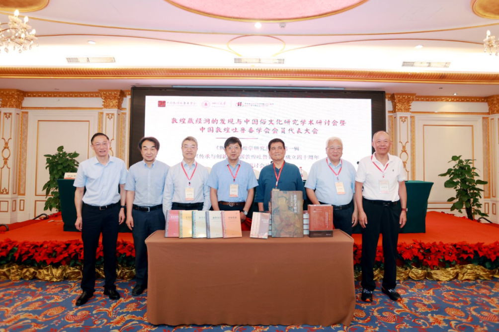院长罗鹭分别致辞。 随后,中国敦煌吐鲁番学会名誉会长郝春文、会长荣新江、副会长郑炳林、敦煌研究院学术委员会主任委员赵声良和四川大学讲座教授郑阿财共同为《新时代敦煌学研究丛书(第一辑)》《传承与创新:中国敦煌吐鲁番学会成立四十周年国际学术研讨会论文集》《藏经洞敦煌艺术精品(大英博物馆)续编》《敦煌石窟写经生》首发仪式揭幕。