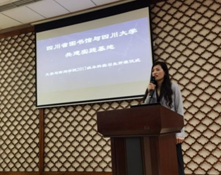 实习带队老师何燕李分别发言,提出了对同学们的期许与要求。随后四川省图书馆办公室、流通阅览部、文献资源建设部等7部门的领导向全体同学介绍各部门的情况。