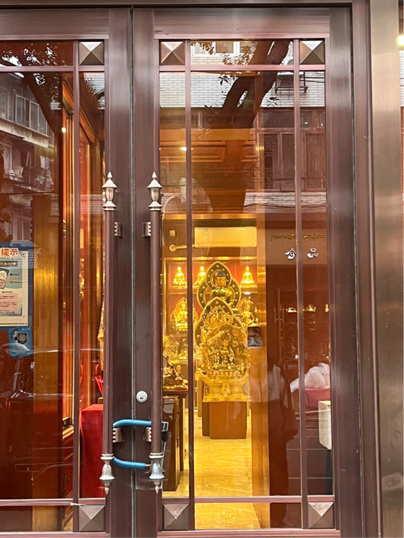 街区大部分商铺经营售卖与藏族有关的纪念品、民族用品等物件,少数经营具有基础服务能力的店铺,比如理发店、药店等。与街道民族书店经营者进行交谈,调研队了解到大部分藏族居民居住在附近小区,每晚八到九点大家会到广场跳锅庄舞,达到联络感情、坚持信仰等目的。