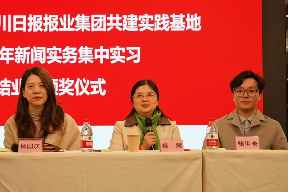 四川日报报业集团传媒研究中心副主任兼《新闻界》副总编辑杨国庆在本次集中实习小结中表示,“很欣喜地看到同学们在不同业务部门深度参与,开展了丰富、充实的新闻实务工作,成效显著,得到实习单位指导老师们的肯定。”她勉励同学们再接再厉,勤于思考和实践,不断进取。