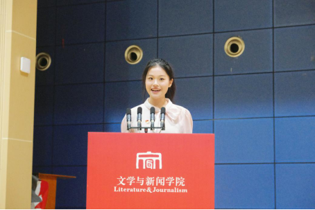 在校学生代表2022级新闻学专业本科生陈柳伊同学发言
