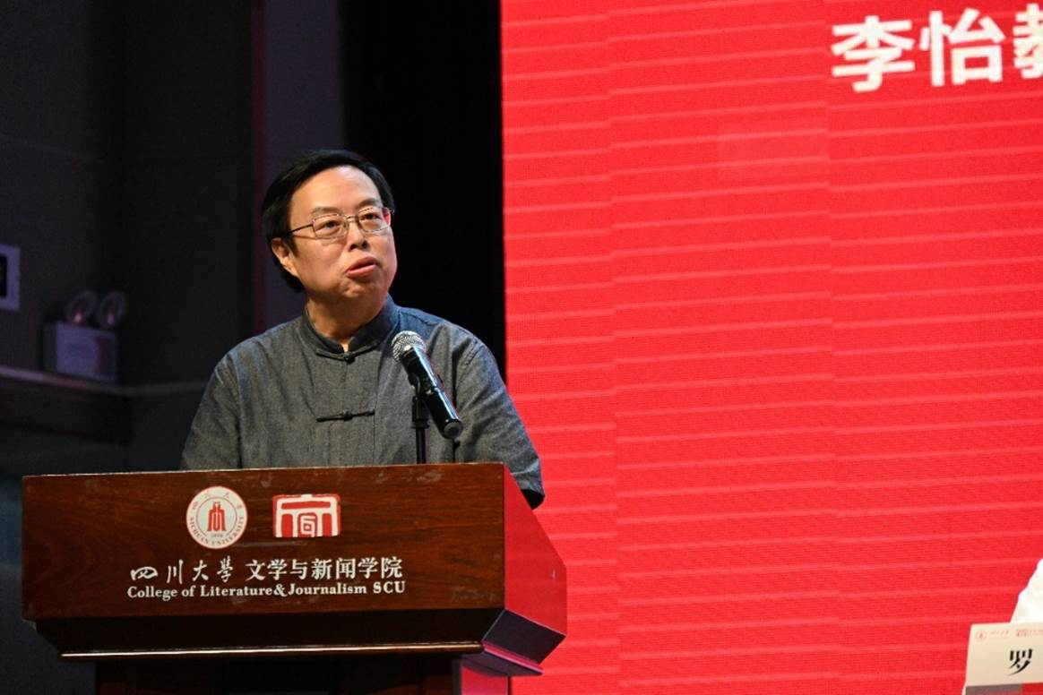 典礼在庄严肃穆的国歌声中拉开了帷幕,院长李怡教授在致辞中首先代表学院对2024级全体新生表示热烈欢迎。他从四川深厚独特的历史文化对历代中国文人的滋养谈起,希望不管是外省的同学还是四川的同学都能够在这片巴山蜀水发现“美丽的新世界”。他在讲话中提到了江安校区的不高山、明远湖,“淡泊明志、宁静致远”,明远是中国士人清朗的精神境界,不高照样为山,背后蕴藏着的是一种平凡中的自信与自傲。这两个川大地标的名字中折射着每一位川大学子为人为学的品格追求和胸怀气魄。他勉励本科新生发掘自己的兴趣并在良师的指引下为之奋斗,他嘱咐研究生、博士生要专注学术领域,扎实学术根基,培养学术创造力。