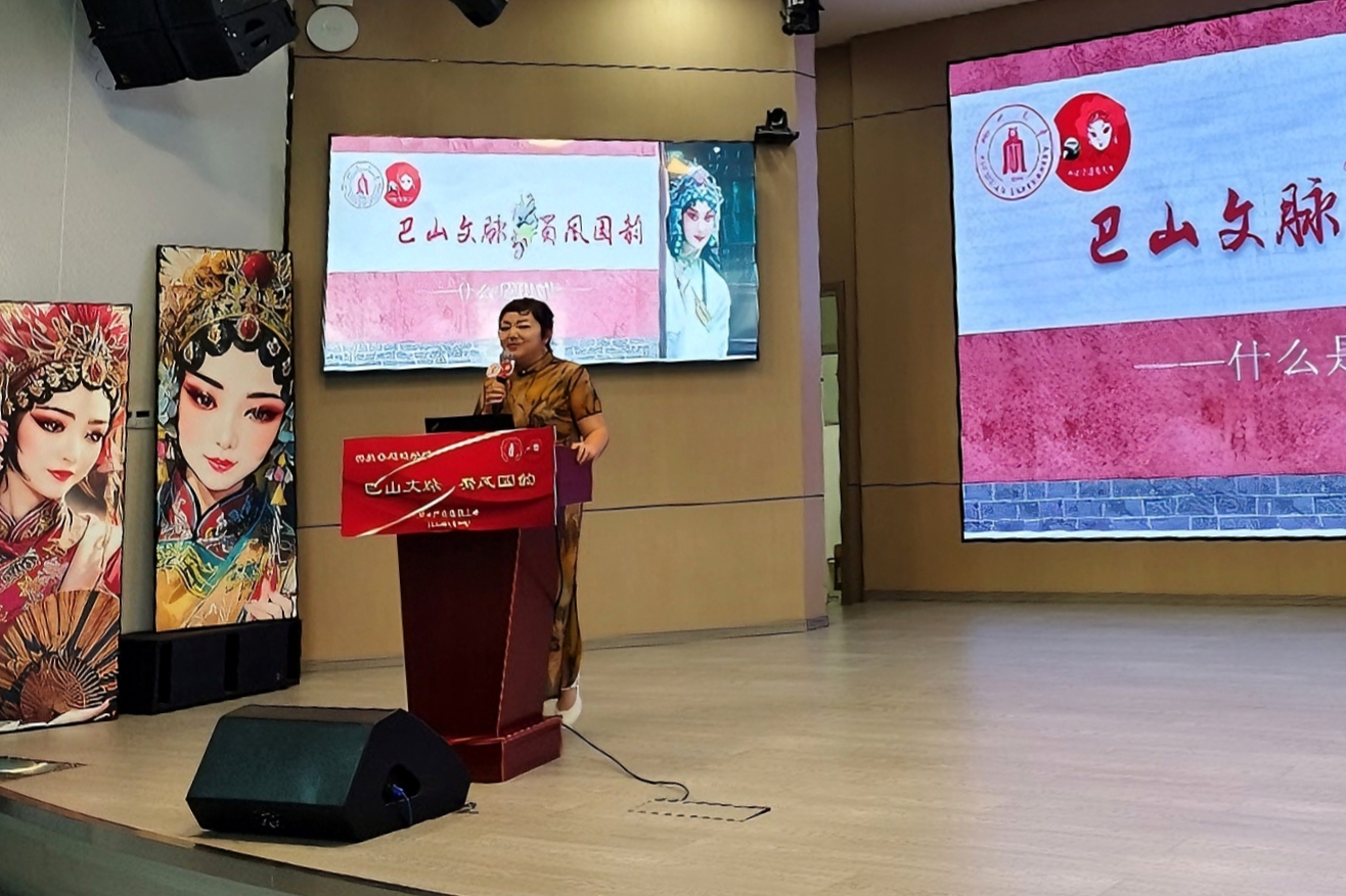 活动开始后,苏明德老师登台,他分别介绍了川剧的五个行当:生、旦、净、末、丑。他通过生动的示范和详细的解读,让观众更深入地了解了川剧的独特魅力。同时,苏老师还分享了他在四川艺术职业学院的学习经历和多年来在川剧舞台上的表演心得。他强调,川剧不仅是表演艺术,更是中华文化的重要组成部分,承载着丰富的历史和文化内涵。