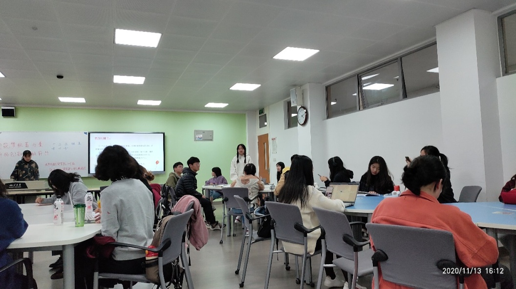 随后,团支书丁秋葭主持了知识竞答环节。经过班委前期活动预告和学习动员,同学们预先对党的十九届五中全会精神的相关内容进行了学习,为竞答环节做好了预热。竞答一开始,马林君同学率先抢答了十九届五中全会通过的《建议》中有关“创新驱动发展”内容的三道题,调动了现场同学的参与热情。每当新的题目显示在大屏幕上,同学们都踊跃举手,竞相发言,现场气氛热烈。