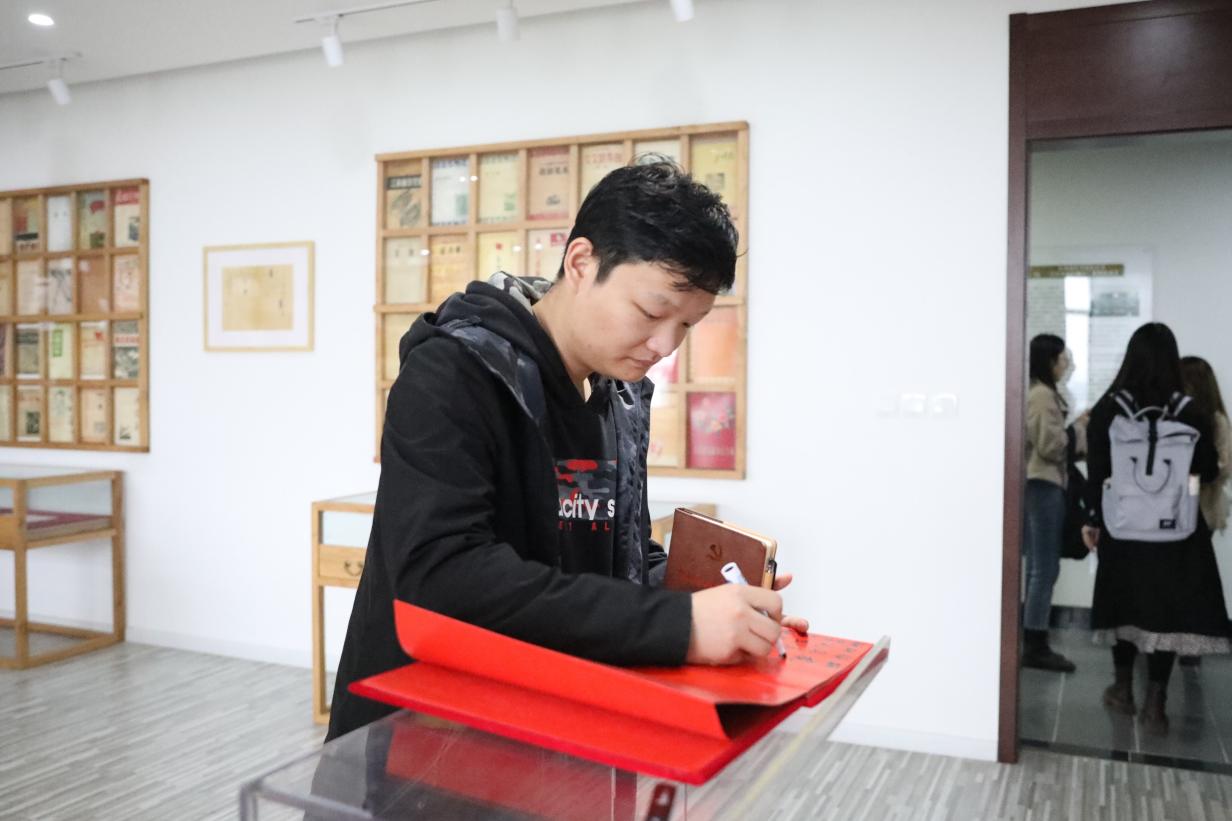 “刘福春中国新诗文献馆”讲解员、2020级汉语言文学拔尖班本科生余贤隽同学介绍到:“本次中国新诗文献展勾勒出了红色诗歌在中国的生长发展过程。由于中国新诗自诞生起就与中国的政治建构、历史发展紧紧地联结在一起,重返新诗的成长就是对中国红色记忆的一次温习和回顾,这不仅能丰富青年党员们对诗歌这种文学体裁的了解,更能增强对自己国家历史的认同感。中国新诗完整地继承了中国诗学的正统——诗言志。红色诗歌中有理想、有信念,时至今日,它们仍以火红的热情和高深的立意感召着每一位青年党员。在重新阅读新诗的过程中,我们能体悟到其中蕴含的磅礴生命力和精神价值。我想每一位青年党员要做的是用青春的火种将它再次点燃,高举过头顶,照亮我们脚下实现中华民族伟大复兴的前进道路。”