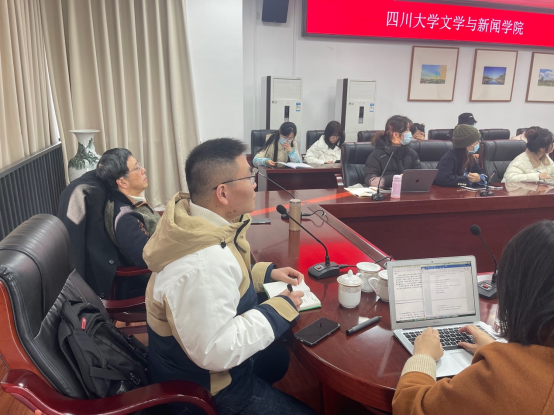 周裕锴教授、戴路副研究员、陶熠老师与40多位同学在江安校区文科楼1区418会议室集中收看陈琳琳老师的在线讲座。这是由体球网手机比分