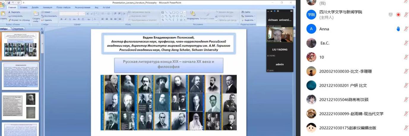2022年12月8日下午两点至五点,俄罗斯科学院高尔基世界文学研究所所长В. В. 波隆斯基教授应spbo手机