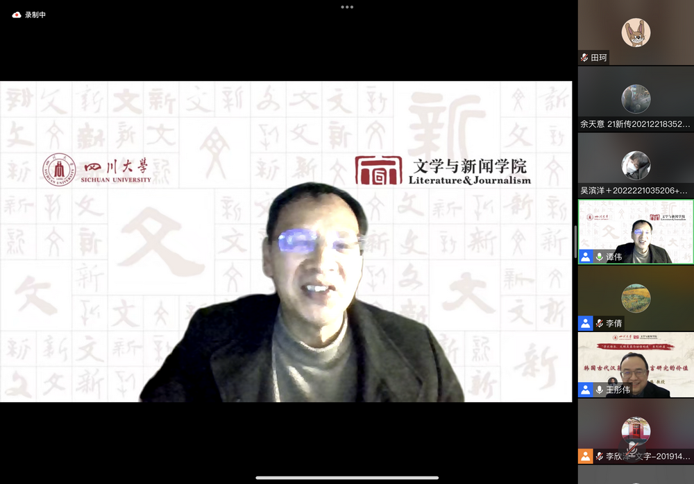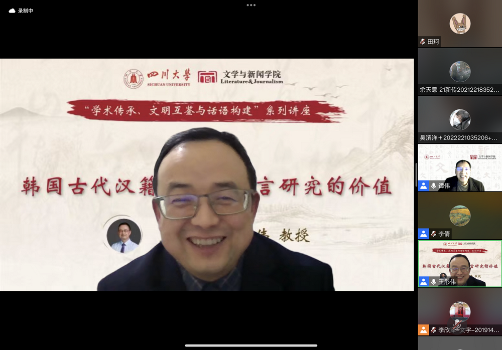 教授,中国俗文化研究所教授,博士生导师,四川大学人事处副处长兼青年教师与专职科研队伍管理办公室主任,四川省传统文化社科普及基地副主任王彤伟教授作了“韩国古代汉籍文献及语言研究价值”的主题讲座。讲座由体球网手机比分