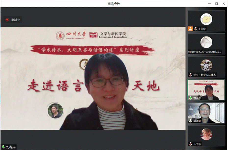 讲座结束后,刘春卉副教授总结认为本次讲座内容丰富,涵盖了俞老师研究的不同领域,也解释了他古今贯通的原由,使得我们对俞老师的研究有了更加深入的了解,并表示从俞老师的精彩分享中获益良多。刘春卉副教授以俞老师有关汉语缩略和其他词汇问题的研究为例,讲述了其相关论著中宏观视野与微观考察相结合,在谈古论今中多方勾连,时常带给她耳目一新的感觉。俞理明教授能够将复杂问题条分缕析,并提升到理论高度,皆源于扎实的学术积累,对后继学者是一种启发和激励,也让参与讲座的同学们真切地感受到了语言研究的魅力。