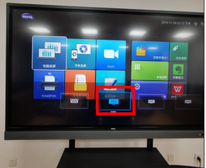 2.主页用遥控器按下最上面的“信源”键,选择OPS,进入一体机自带的电脑系统。